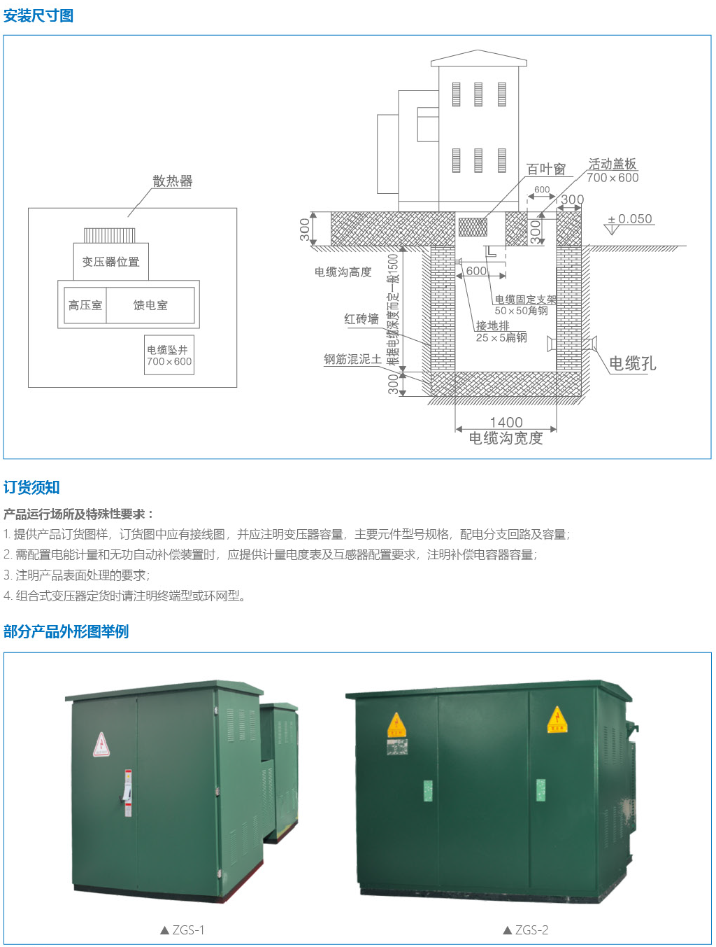 ZGS11-12系列组合美式预装式变电站,适用于10kV环网供电,双电源供电或终端供电系统中,作为变电.计量、补偿控制和保护装。