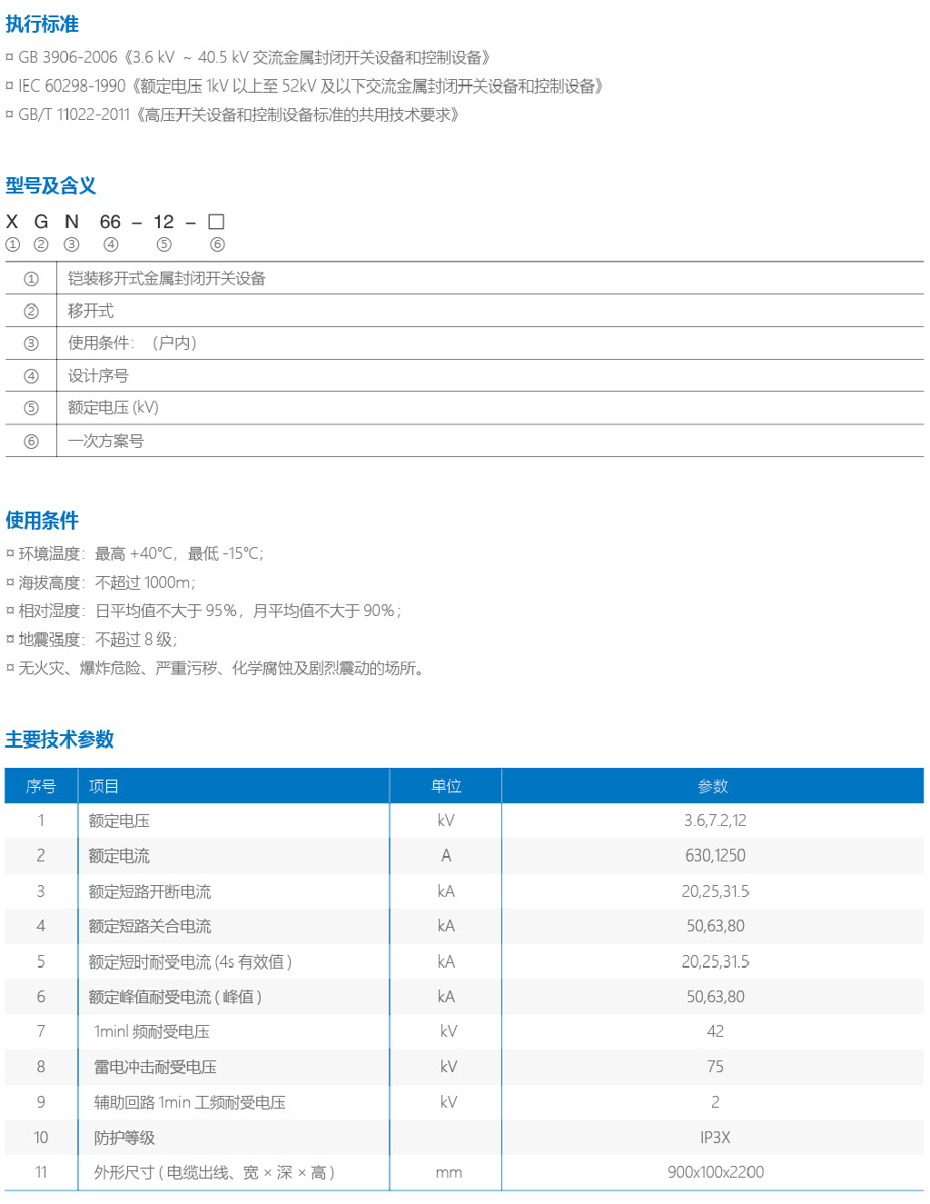 XGN66-12箱型固定式交流金属封闭式开关设备(以下简称开关柜)适用于3.6-12kV三相交流50Hz系统中作为接受与分配电能的装置,适合于频繁操作的场所和配装油开关的开关柜改造之用。其母线系统为单母线系统和单母线分段系统。